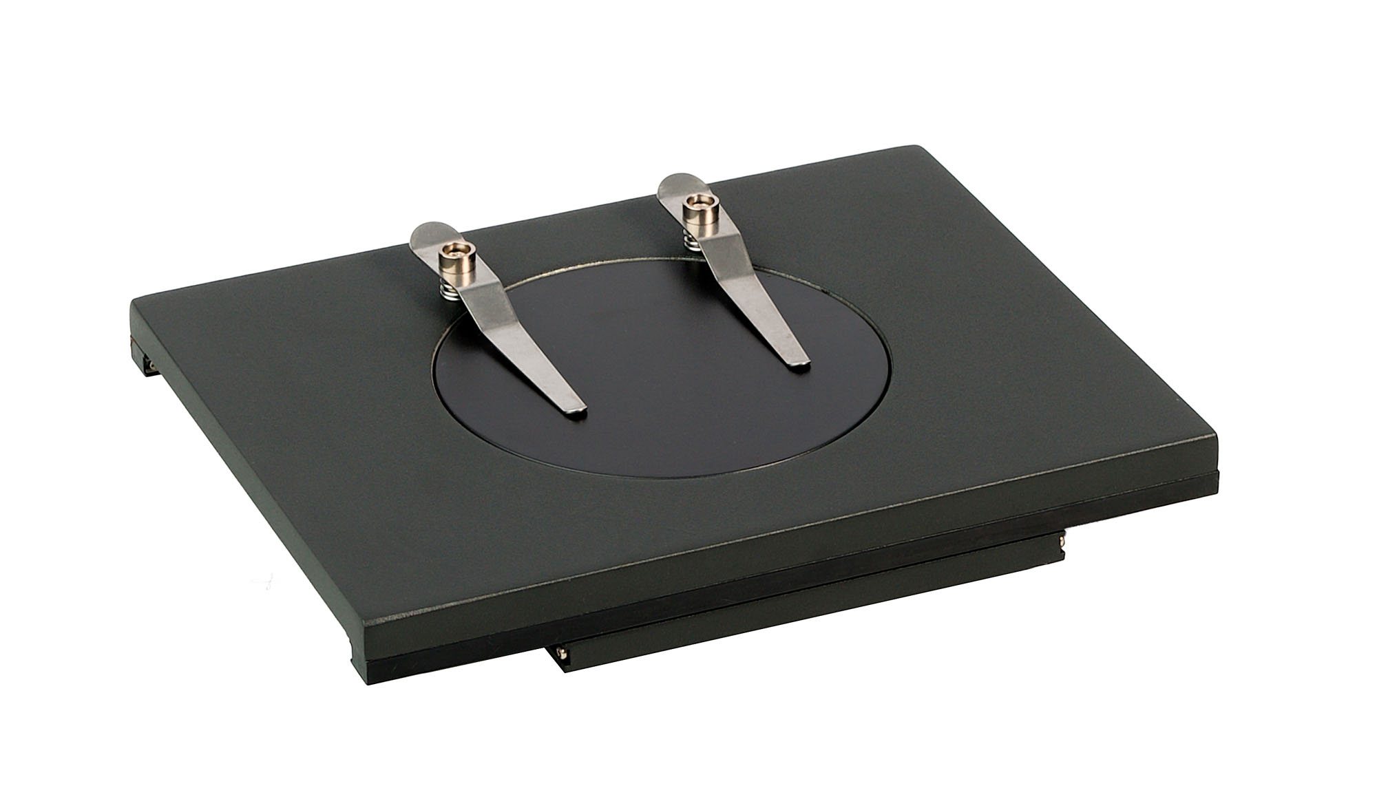 La platina se monta en la base del estereomicroscopio y se utiliza para mover la muestra bajo el objetivo con precisión y suavidad y registrar las observaciones con una cámara. Los mandos coaxiales se giran para desplazar la muestra a lo largo de los ejes X (derecha/izquierda) e Y (adelante/atrás). La superficie de vidrio transparente de la platina permite trabajar con luz reflejada y transmitida. Incluye una escala de precisión para realizar mediciones en un solo eje. Se incluyen dos soportes para muestras para fijar muestras planas.
