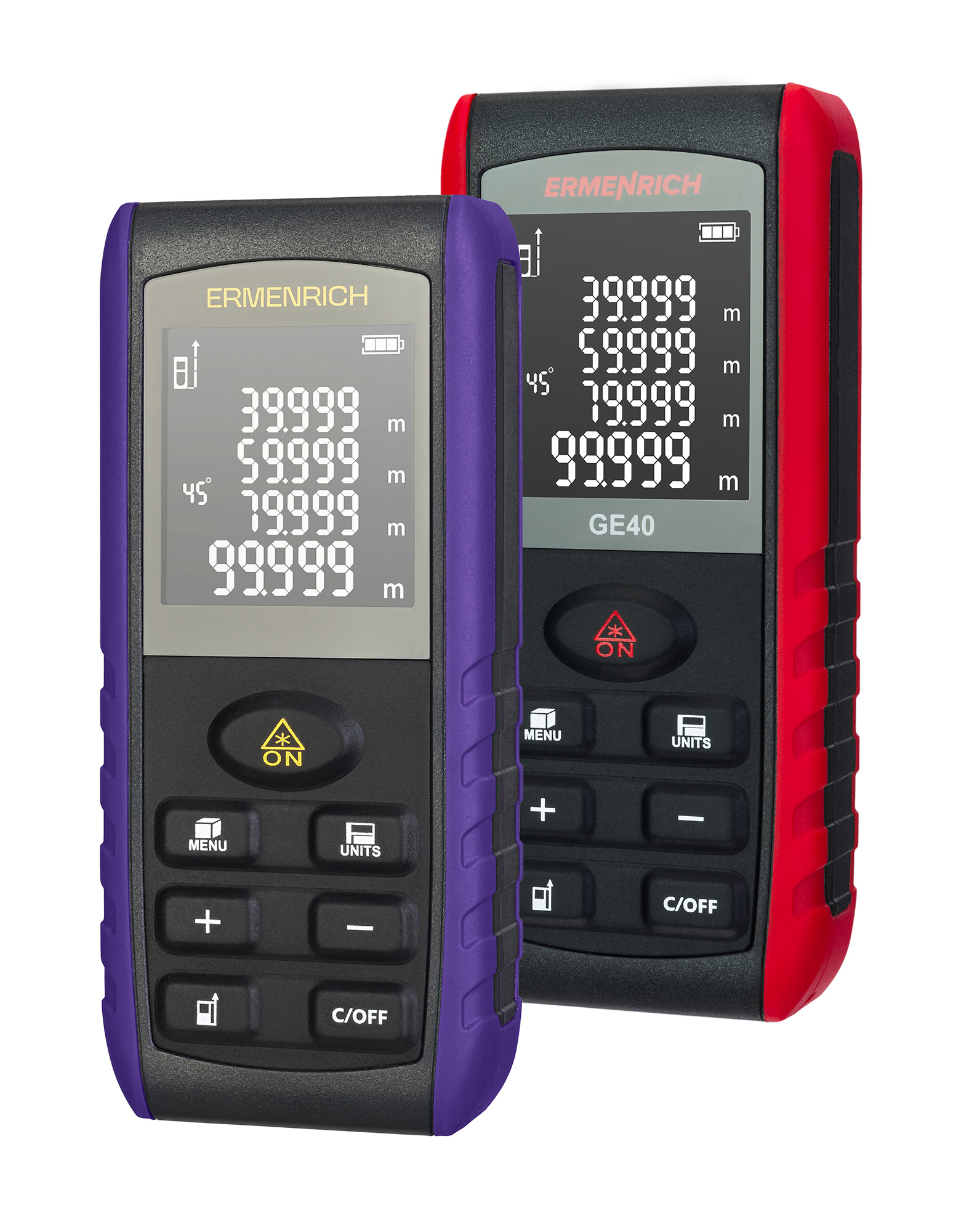 El medidor láser Ermenrich Reel PRO GE40 es una herramienta práctica y multifuncional para trabajos de construcción, reparación e ingeniería. Con la ayuda de este instrumento, puede medir distancias dentro de un radio de 40 metros, así como calcular áreas, volúmenes y ángulos. Cuando necesite hacer mediciones en condiciones difíciles, puede usar el teorema de Pitágoras para calcular la distancia a partir de mediciones intermedias.