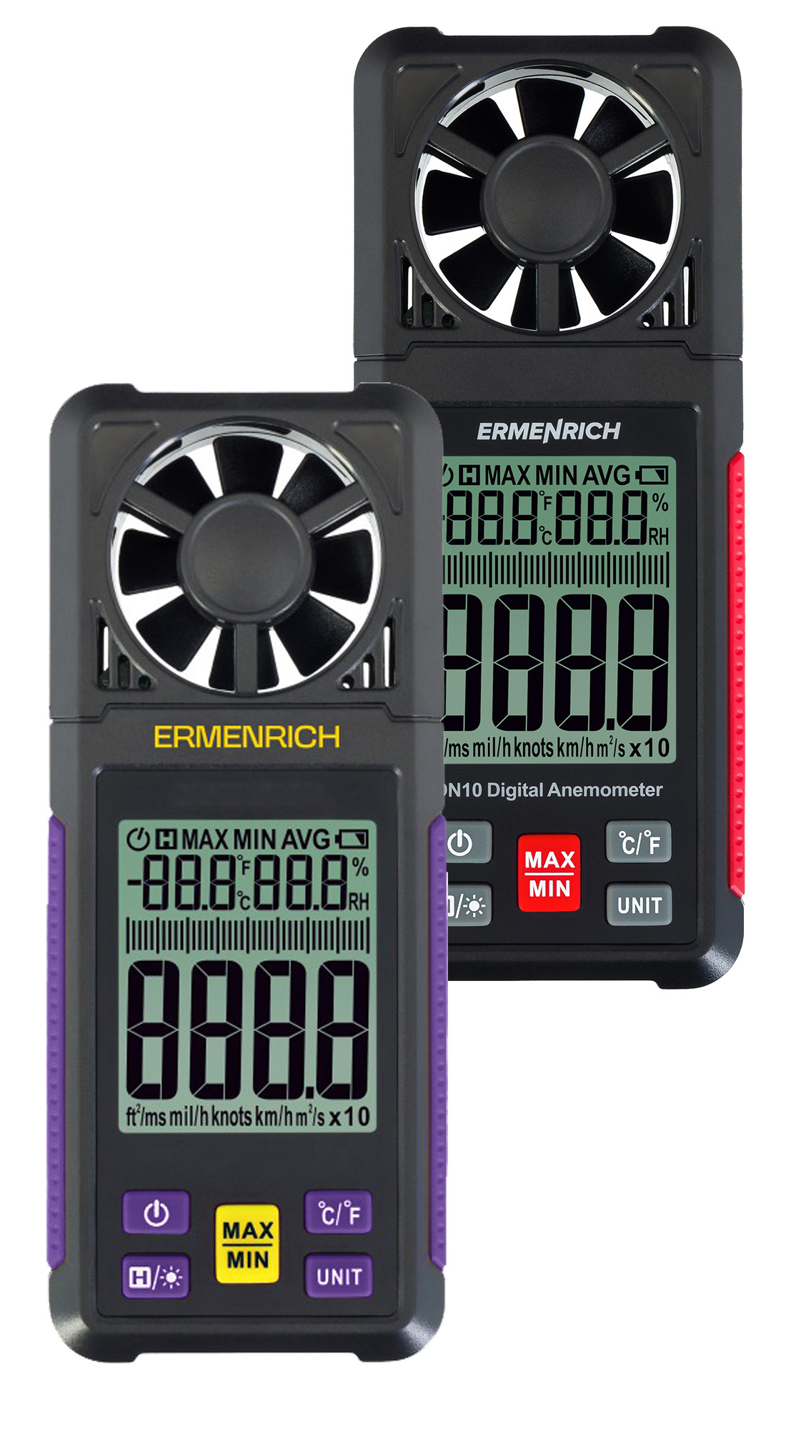 El anemómetro digital Ermenrich Seek DN10 es una herramienta de medición profesional que permite controlar la velocidad del flujo de aire, la temperatura y la humedad en exteriores o interiores. Al mismo tiempo, el dispositivo tiene un tamaño reducido, un cuerpo ergonómico y funciona de forma completamente autónoma.