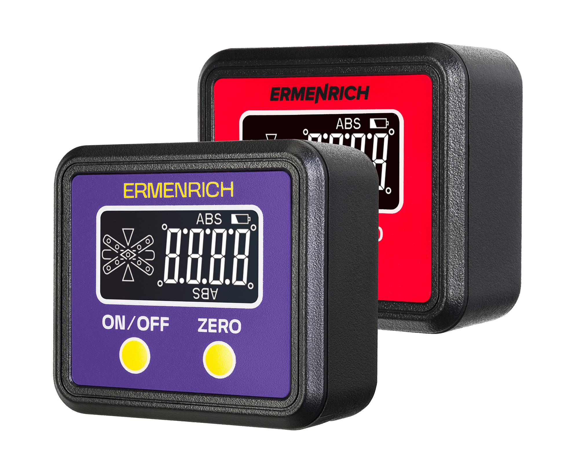El modelo Ermenrich Verk LQ20 es un instrumento de uso general diseñado para realizar tareas de nivelación en trabajos de construcción, reparación y acabado, instalación y fabricación. El nivel puede medir ángulos de inclinación en grados a lo largo de cuatro ejes. Este instrumento se caracteriza por su alta precisión: la sensibilidad es de 0,1/0,2 grados (dependiendo de la nitidez del ángulo). Las mediciones obtenidas se muestran en la pantalla LCD integrada.